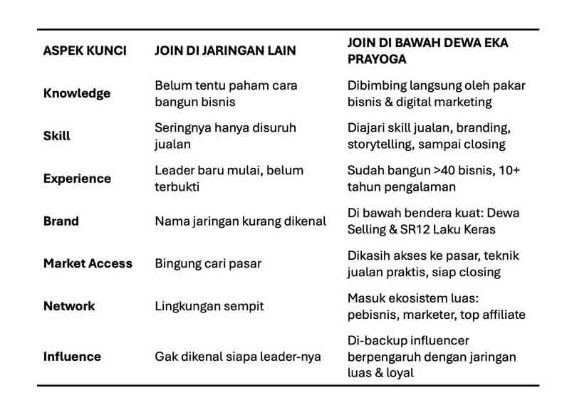 Di sini, kamu tidak hanya diajari jualan, tapi juga dibimbing langsung oleh mentor berpengalaman, dilatih mindset sukses, dan didukung oleh komunitas yang memotivasi!
